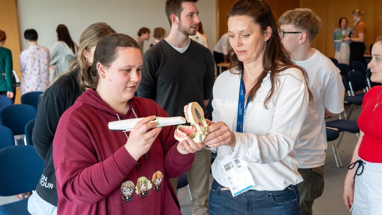 Zum Abschluss des Tages geht es noch einmal in die Tiefe: Unter dem Titel „Was die Zukunft bringt“ sprechen Auszubildende ab 15:00 Uhr über Karrierewege in der Zahntechnik. Moderiert wird das Gespräch von ZTM Maxi Grüttner.
