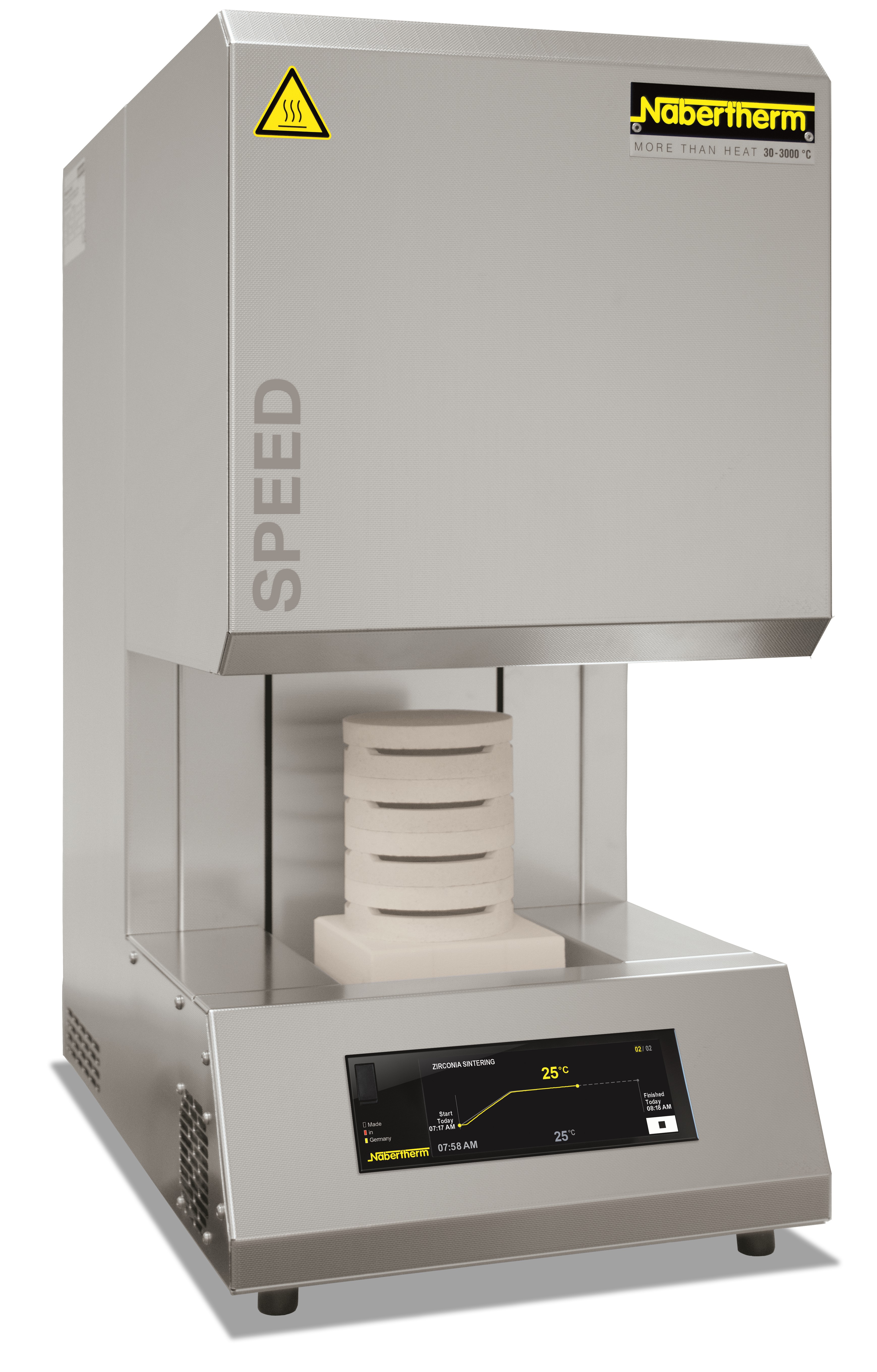 The high-temperature sintering furnaces are additionally equipped with a drying as well as a forced cooling function. For residual drying, the oven remains open gapwise during heating up to a defined temperature and thus ensures reliable removal of moisture. For accelerated cooling, the furnace is automatically opened step by step under program control. Depending on the batch used and the saggars, these high-temperature furnaces can achieve total cycle times of less than two and a half hours. The furnaces can be individually programmed for all recommended sintering curves of all zirconia manufacturers.