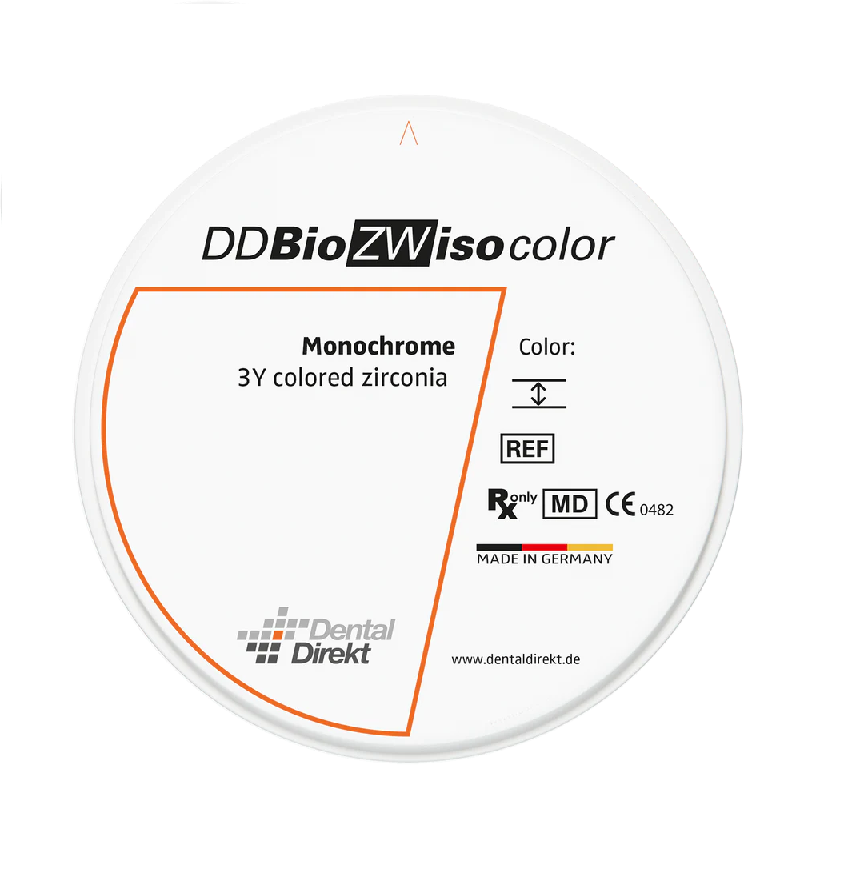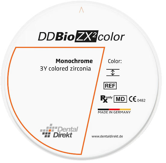 - DD Bio ZX² color / DD Bio ZW iso color – colored zirconia options for direct shade matching without additional coloring.