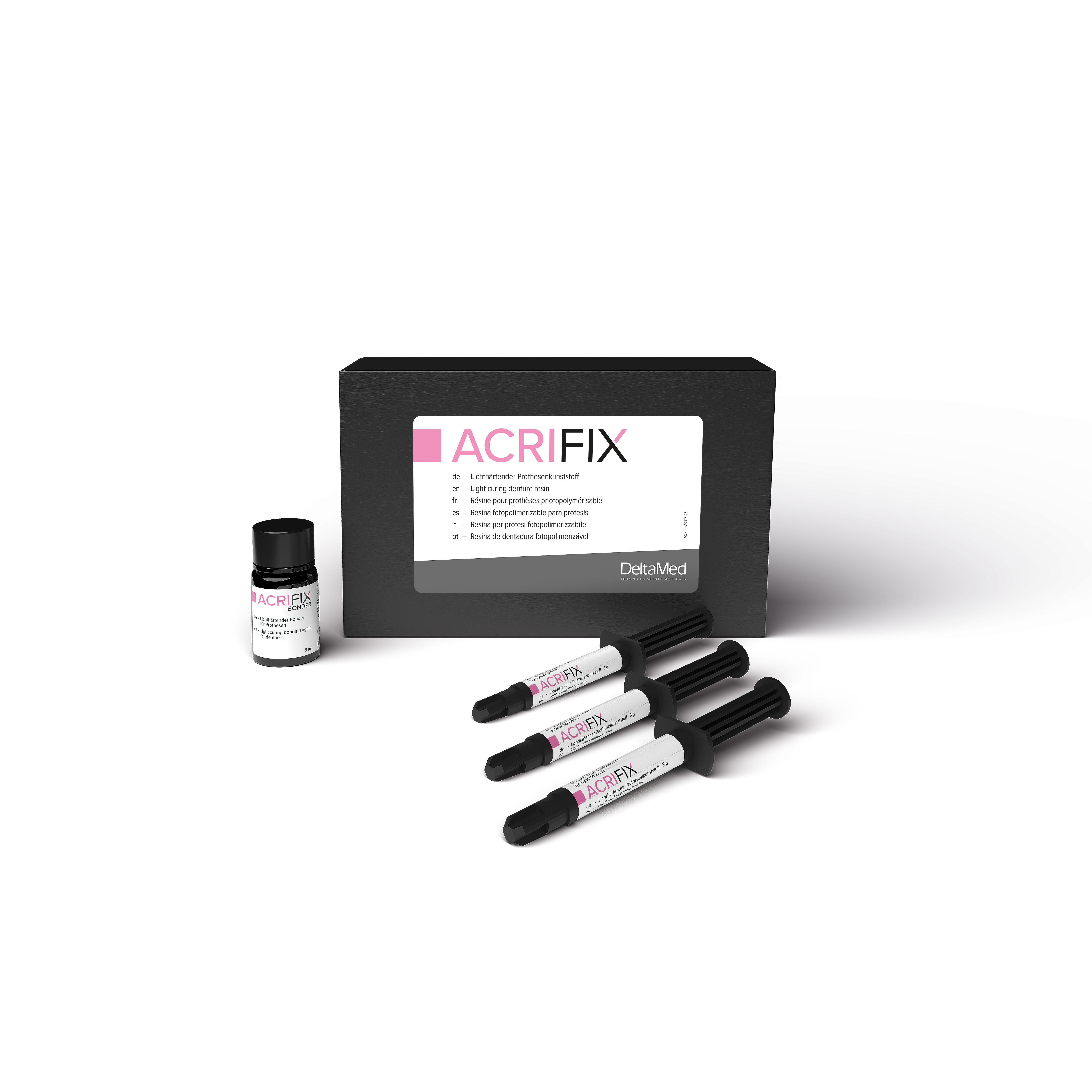 Acrifix is available in three shades: pink, pink-opaque and A3